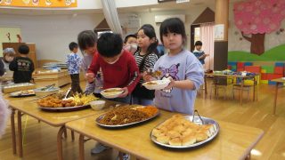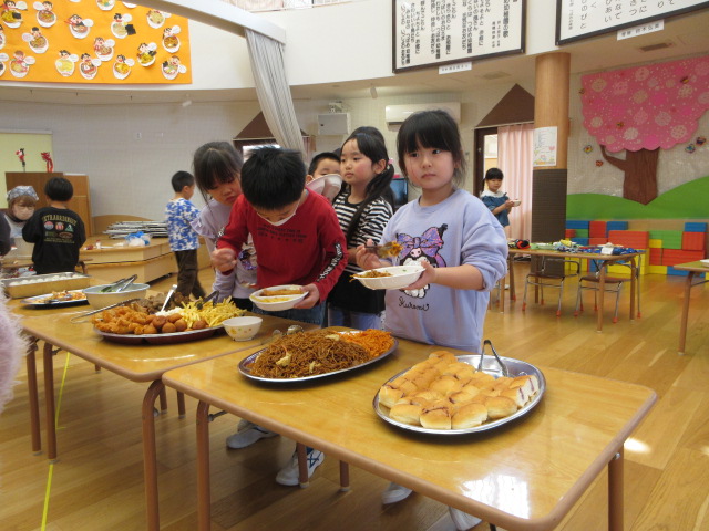 待ちに待ったバイキング給食。朝からからワクワクが止まりません。