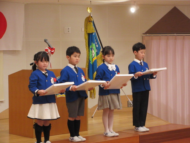 1人ひとりが堂々と卒園証書を受け取り、幼稚園での楽しかった思い出を大きな声で発表しました。