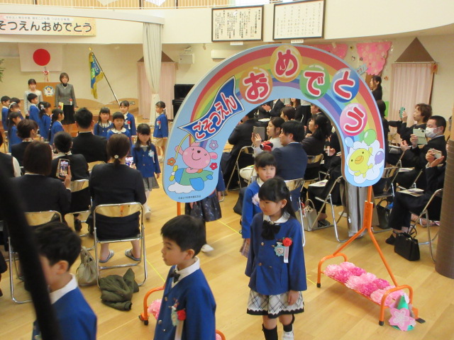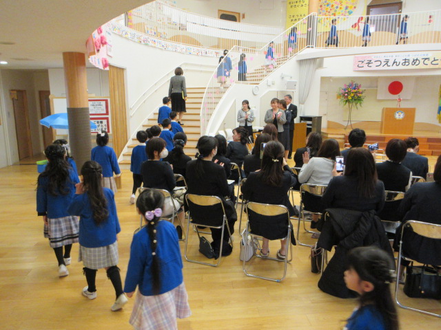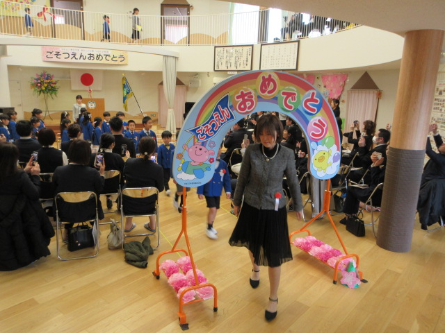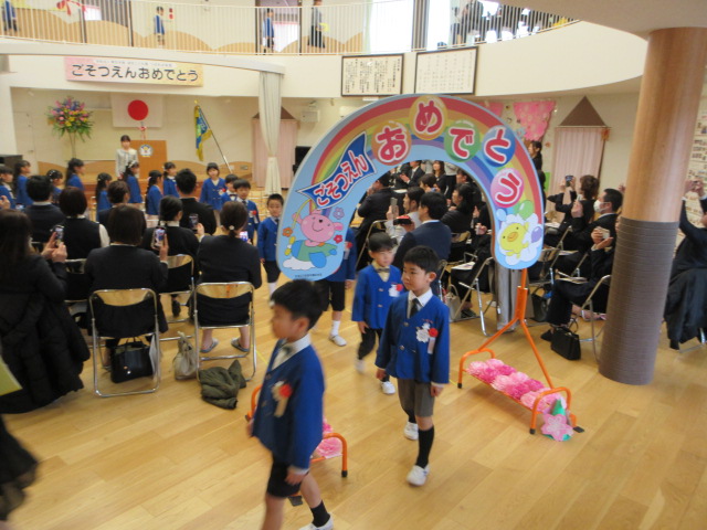 卒園児入場(思い出がよみがえり担任の先生の目には涙が光っていました)
