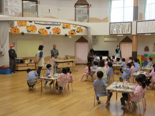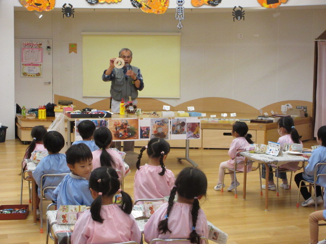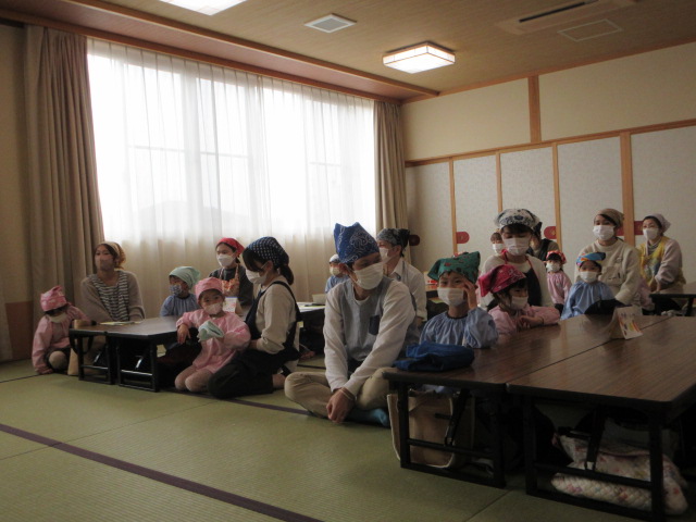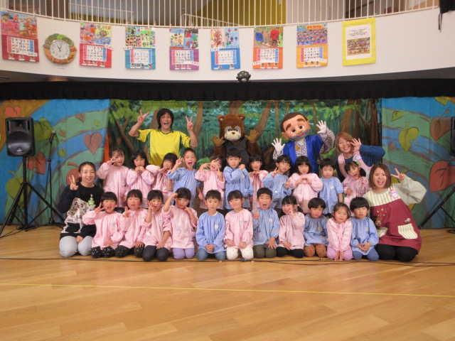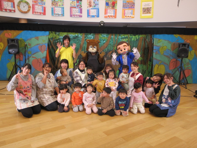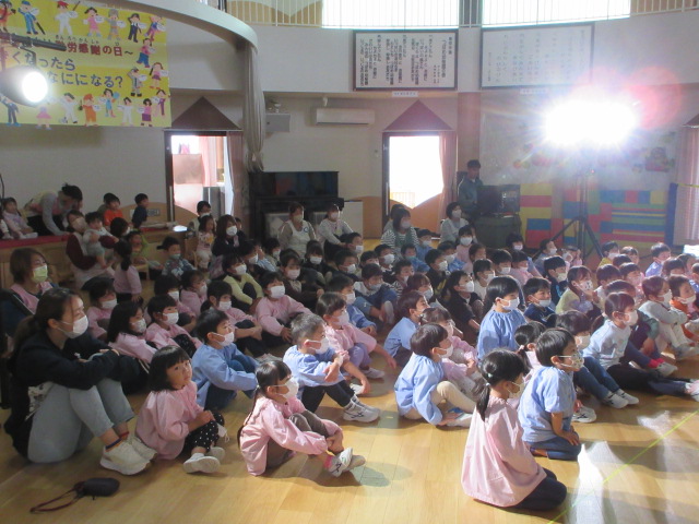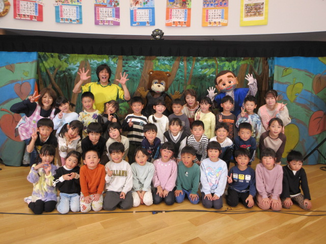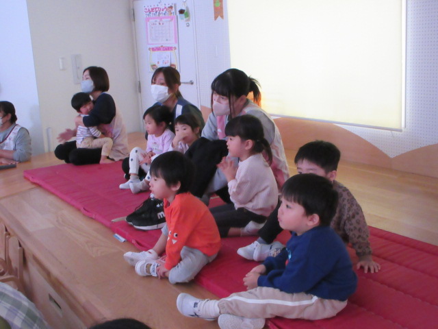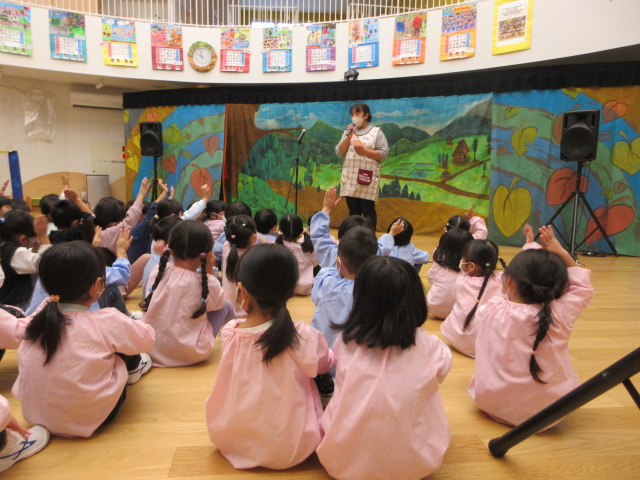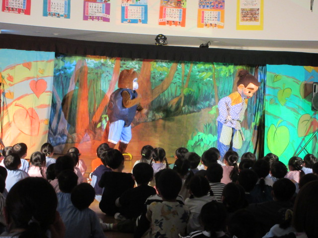 人形劇を初めて見るお友達が多く、子ども達の目は舞台にくぎづけ!全園児最後まで楽しく参加していました。