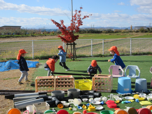 毎日楽しく遊んだ外遊びの道具をきれいに洗ってお片付け‼