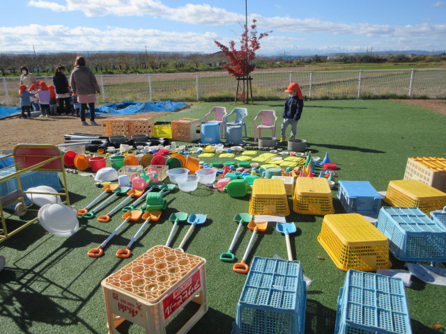 砂場の道具のピカピカになりました。春になったらまた、いっぱい遊ぼうね。