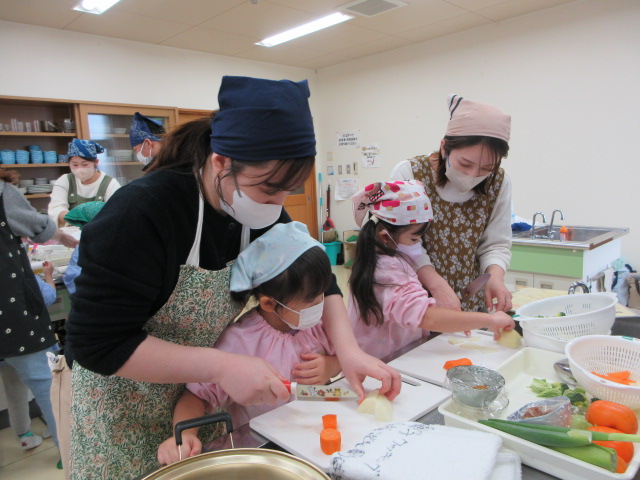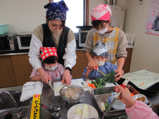 初めて包丁を使ってドキドキしたけど、おいしい料理が出来上がり大満足の子ども達でした❤