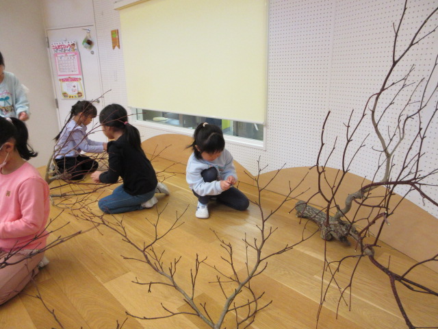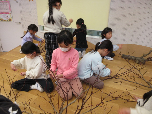 水木の芽を摘み取り、だんご下げの準備のお手伝い!