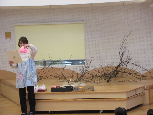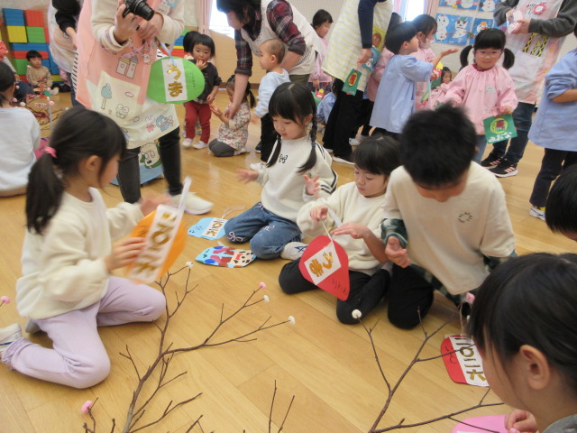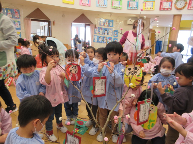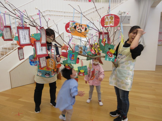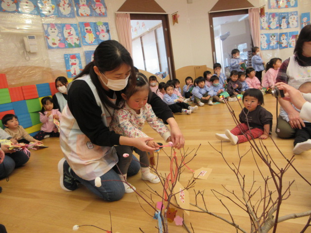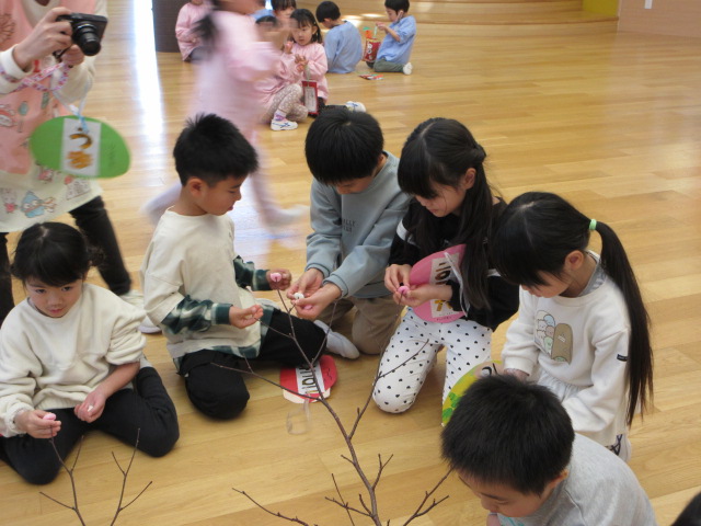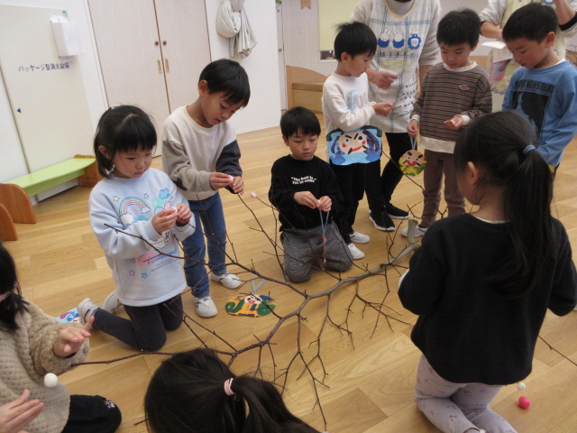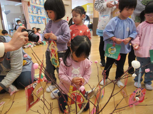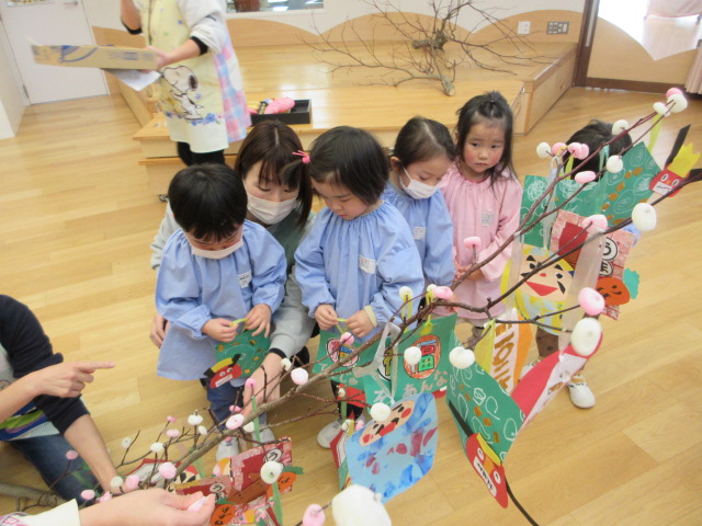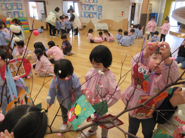 2歳児もも組 「めでたい物をギュギュっと詰め込んだ飾りをつくりました」