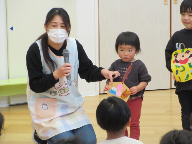 どんな飾りを作ったのかな?みんなの前で紹介します。