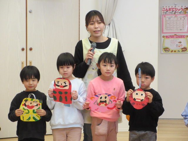 年少いちご組 「獅子を作りました。世界に一つだけの獅子、上手にできました」
