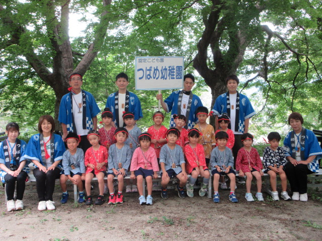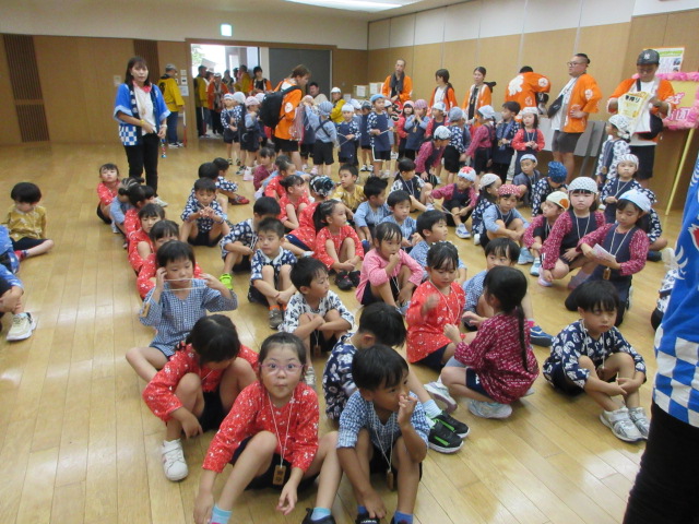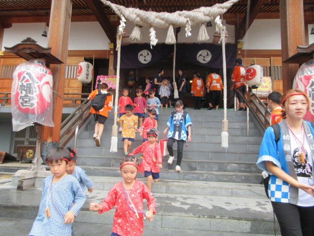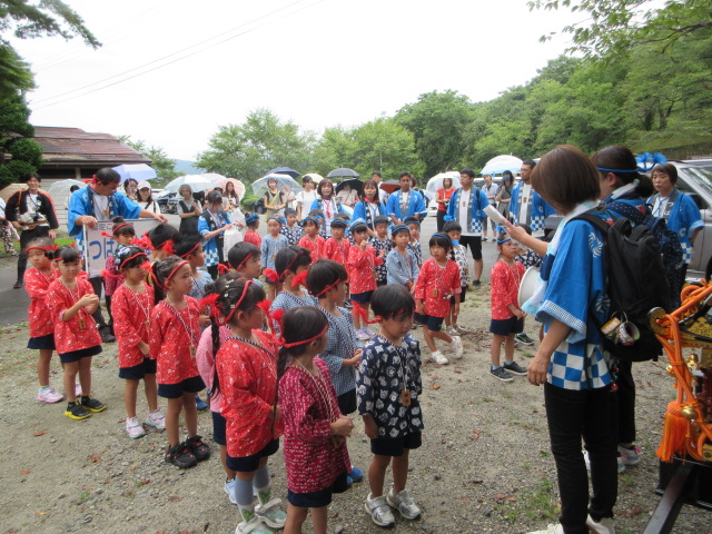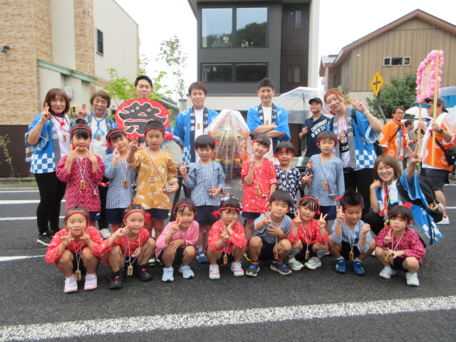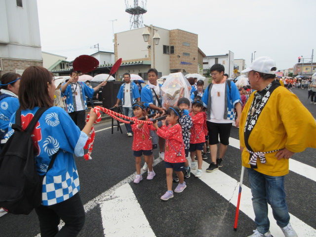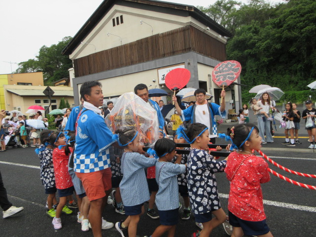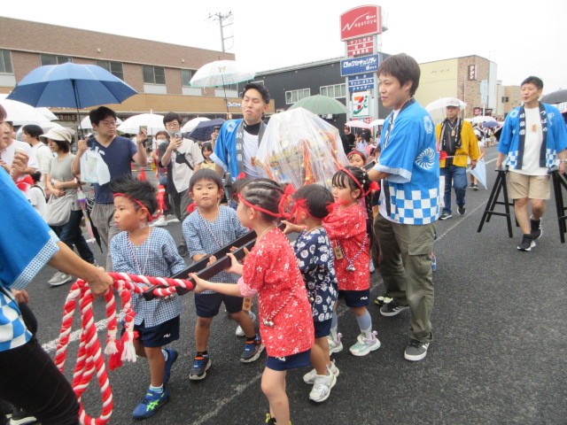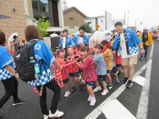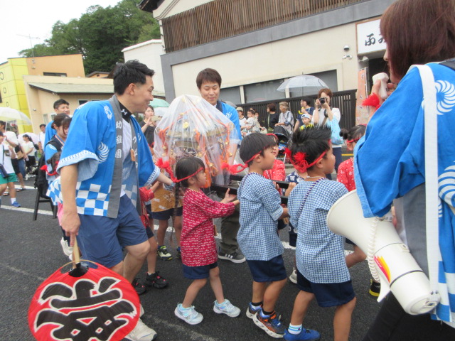 雨が心配されましたが、祭事部の方の早い段階での決定により園児みこしを行うことができました。