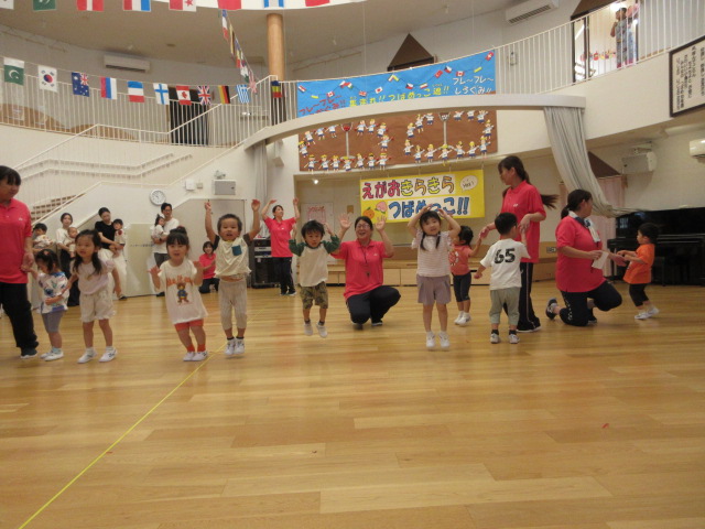もも組おゆうぎ「ZOOっと体操」いろいろな動物になりきって楽しく踊ったよ。