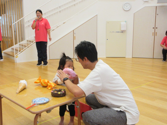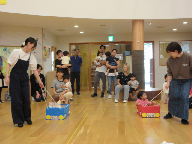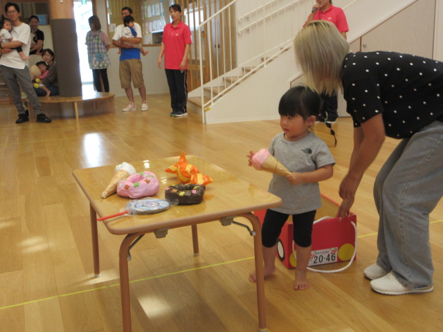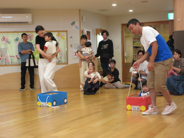 みかん組 親子競技 「はじめてのおつかい♪キラキラえがおでドライブGO‼」お家の方といっしょに笑顔でお買い物を楽しみました。